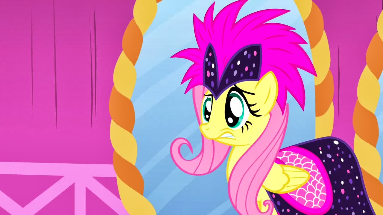 Also, Fluttershy, you're nervous because why? It was only a handful of episodes ago that you did exactly this same shit in front of ALL OF PONYVILLE, IN A FAR FUCKING WORSE OUTFIT THAN THE ONE YOU ARE CURRENTLY WEARING.